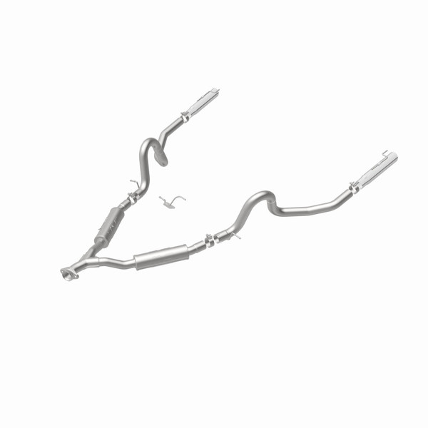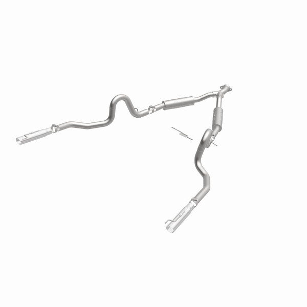 The MagnaFlow 1999-2004 Ford Mustang Street Series Cat-Back Performance Exhaust System 15717 brings out the personality of your 3.8L, 3.9L 1999-2004 Ford Mustang with our signature resonant, powerful engine tone and dyno-proven performance. Thanks to its fast-flowing, mandrel bent 2.5in. main piping and 2 Straight-Through mufflers ending in a Dual Split Rear exit with 3in. Polished Clamp-On Single Wall Angle Cut Cut Edge tips, this Ford Mustang exhaust kit has the performance chops to match its sporty sound and appearance. Upgrade your ride to the next level with an exhaust that has the pipes to put other Ford Mustang's to shame. With this system your vehicle will be producing Moderate exterior and Mild interior sound levels while leaving other cars and trucks feeling envious at every stoplight. Exhaust kit 15717 features a cat-back layout that replaces your ride's stock exhaust components from near the catalytic converter on back. Extensive 3D scanning during development has resulted in a direct-fit design that you can easily install yourself. 15717 is produced using CNC precision robotic manufacturing techniques and is backed by MagnaFlow's 1-year limited finish warranty and limited lifetime construction warranty.