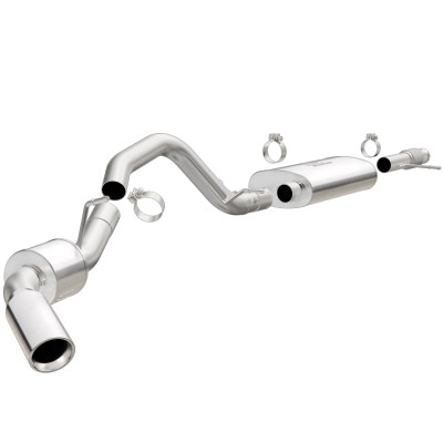 The MagnaFlow 2015-2018 Jeep Renegade Street Series Cat-Back Performance Exhaust System 19324 brings out the personality of your 2.4L 2015-2018 Jeep Renegade with our signature resonant, powerful engine tone and dyno-proven performance. Thanks to its fast-flowing, mandrel bent 2.5in. main piping and 1 Straight-Through mufflers ending in a Single Straight Passenger Side Rear exit with 4in. Polished Welded-On Double Wall Angle Cut Folded Edge tips, this Jeep Renegade exhaust kit has the performance chops to match its sporty sound and appearance. Upgrade your ride to the next level with an exhaust that has the pipes to put other Jeep Renegade's to shame. With this system your vehicle will be producing Moderate exterior and Mild interior sound levels while leaving other cars and trucks feeling envious at every stoplight. Exhaust kit 19324 features a cat-back layout that replaces your ride's stock exhaust components from near the catalytic converter on back. Extensive 3D scanning during development has resulted in a direct-fit design that you can easily install yourself. 19324 is produced using CNC precision robotic manufacturing techniques and is backed by MagnaFlow's 1-year limited finish warranty and limited lifetime construction warranty.