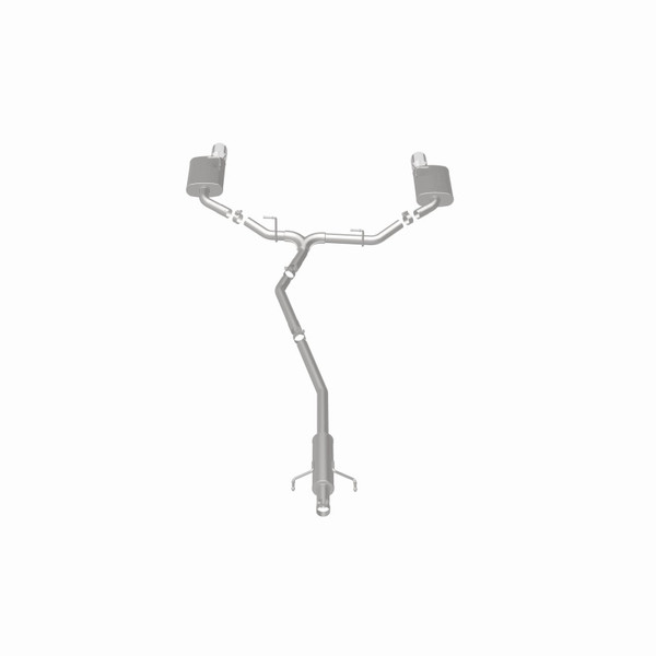 The MagnaFlow 2007-2012 Ford Fusion Street Series Cat-Back Performance Exhaust System 15552 brings out the personality of your 3.0L, 3.5L 2007-2012 Ford Fusion with our signature resonant, powerful engine tone and dyno-proven performance. Thanks to its fast-flowing, mandrel bent 2.25in. main piping and 3 Straight-Through mufflers ending in a Dual Split Rear exit with 4in. Polished Welded-On Double Wall Angle Cut Folded Edge tips, this Ford Fusion exhaust kit has the performance chops to match its sporty sound and appearance. Upgrade your ride to the next level with an exhaust that has the pipes to put other Ford Fusion's to shame. With this system your vehicle will be producing Moderate exterior and Mild interior sound levels while leaving other cars and trucks feeling envious at every stoplight. Exhaust kit 15552 features a cat-back layout that replaces your ride's stock exhaust components from near the catalytic converter on back. Extensive 3D scanning during development has resulted in a direct-fit design that you can easily install yourself. 15552 is produced using CNC precision robotic manufacturing techniques and is backed by MagnaFlow's 1-year limited finish warranty and limited lifetime construction warranty.