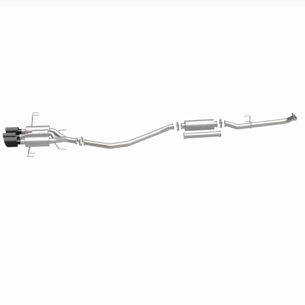 The MagnaFlow Honda Civic Type R xMOD Series Performance Exhaust System #19383 brings the cutting-edge modularity of our xMOD Series to one of America’s most popular vehicles. This cat-back exhaust kit is designed to enhance your 2.0L 2017-2021 Honda Civic with dyno-proven performance made possible thanks to fast-flowing mandrel bent 2.5†diameter piping that passes through three straight-through mufflers and one multi-chamber muffler, ending in a triple center rear exit with 4.5†flanking carbon tips and a 4†center carbon tip. The direct-fit design replaces all OEM exhaust components from near the catalytic converter on back. Exhaust system #19383 is engineered to allow your Honda Civic Type R exhaust note to be tailored to your liking by choosing between the easily swappable muffler or straight pipe modules, each secured using racing bred V-band clamps. #19383’s direct-fit design makes installation a breeze thanks to the use of advanced 3D scanning during development. This performance exhaust system is made of 100% durable and corrosion-resistant stainless steel and produced using CNC precision robotic manufacturing techniques, all backed by MagnaFlow’s limited lifetime construction warranty. Please check to ensure compliance with local noise regulations.