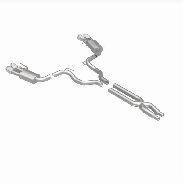 The MagnaFlow 2018-2023 Ford Mustang Competition Series Cat-Back Performance Exhaust System 19368 brings an aggressive, attention-grabbing edge to the deep resonant exhaust note we're so well known for. This exhaust kit is designed to enhance your 5.0L 2018-2023 Ford Mustang with dyno-proven performance made possible thanks to fast-flowing mandrel bent 3in. main piping and 2 Straight-Through mufflers ending in a Quad Split Rear exit with 4in. Polished Welded-On Double Wall Angle Cut Folded Edge tips featuring a sporty finish. The exhaust system's cat-back layout replaces your ride's exhaust system from near the catalytic converter on back. Exhaust system 19368 is engineered to make your vehicle's engine produce Aggressive exterior and Moderate interior sound levels, befitting its competition-oriented design. 19368's direct-fit design makes installation a breeze thanks to the use of advanced 3D scanning techniques. This performance exhaust system is made of 100% durable and corrosion-resistant stainless steel and produced using CNC precision robotic manufacturing, all backed by MagnaFlow's limited lifetime warranty. Please check to ensure compliance with local noise regulations.