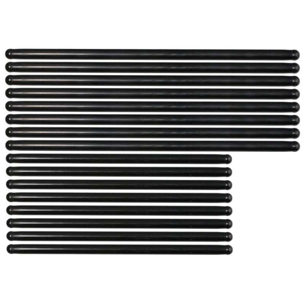 Cup and tip pushrods and ball end pushrods manufactured of 1010 steelSwedged end pushrods manufactured of 4130 chrome molyAll pushrods are heat treated and black oxide finished
