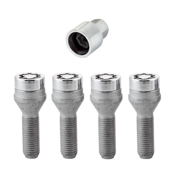 Protecting the world's finest wheels and tires from theft since 1964.; Wheel Lock bolts are designed in USA and manufactured in EU and USA. Presently, McGard is an Original Equipment wheel lock supplier to most automobile brands around the world.; These easy-to-use wheel locks function like regular lug bolts, but require a special key tool for installation and removal.; The steel collar on the user friendly key guides the key into the lock pattern.; The collar holds the key in alignment for easy installation and removal.; The computer generated key designs allow for an infinite number of key patterns.; The extra narrow pattern groove on the lock resists the intrusion of removal tools into the pattern.; Every McGard wheel lock utilizes fully machined, restricted chemistry steel made specifically for McGard and through-hardened for its unsurpassed level of security.; McGard's plating process includes several layers of nickel and one layer of microporous chrome producing a superior finish while protecting against rust.; The bolt stem has a dacromet coating to meet O.E.M.; standards.; For use with steel or aluminum wheels with a tapered seat. This product contains globally sourced materials/components.