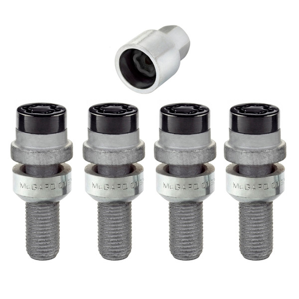 Protecting the world's finest wheels and tires from theft since 1964.; Wheel Lock bolts are designed in USA and manufactured in EU and USA.; Presently, McGard is an Original Equipment wheel lock supplier to most automobile brands around the world.; These easy-to-use wheel locks function like regular lug bolts, but require a special key tool for installation and removal.; The steel collar on the user friendly key guides the key into the lock pattern.; The collar holds the key in alignment for easy installation and removal.; The computer generated key designs allow for an infinite number of key patterns.; The extra narrow pattern groove on the lock resists the intrusion of removal tools into the pattern.; Every McGard wheel lock utilizes fully machined, restricted chemistry steel made specifically for McGard and through-hardened for its unsurpassed level of security.; McGard's plating process includes several layers of nickel and one layer of microporous chrome with black PVD producing a superior finish while protecting against rust.; The bolt stem has a dacromet coating to meet O.E.M.; standards.; For use with steel or aluminum wheels with a ball-shaped seat.; Matching Lug Bolts are available in Installation Kits and Bulk Boxes of 50.; This product contains globally sourced materials/components.