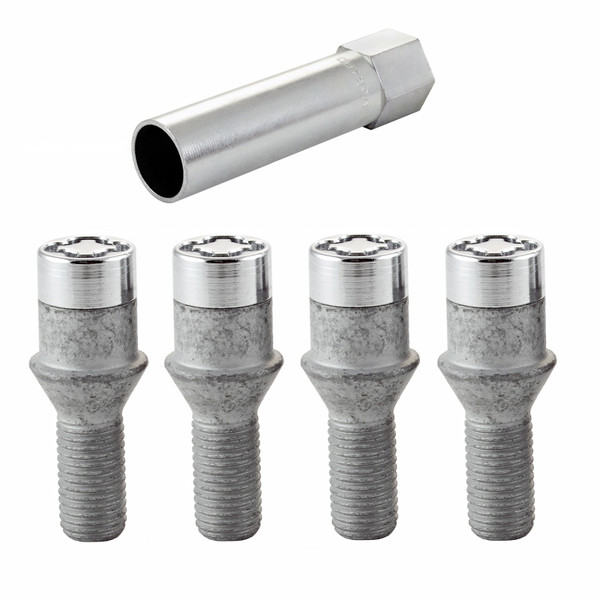 McGard Wheel Lock Bolt Set - 4pk. (Tuner / Cone Seat) M12X1.5 / 17mm Hex / 22.4mm Shank L. - Chrome - 27192