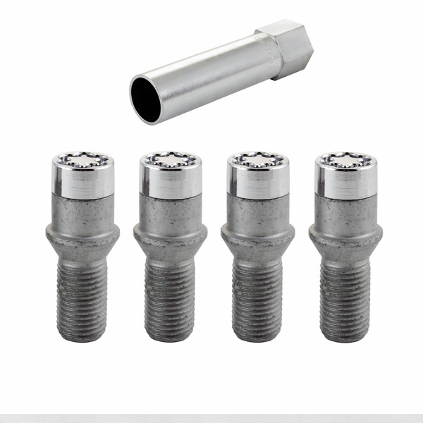 Protecting the world's finest wheels and tires from theft since 1964.; Wheel Lock bolts are designed in USA and manufactured in EU and USA.; Presently, McGard is an Original Equipment wheel lock supplier to most automobile brands around the world.; These easy-to-use wheel locks function like regular lug bolts, but require a special key tool for installation and removal.; The steel collar on the user friendly key guides the key into the lock pattern.; The collar holds the key in alignment for easy installation and removal.; The computer generated key designs allow for an infinite number of key patterns.; The extra narrow pattern groove on the lock resists the intrusion of removal tools into the pattern.; Every McGard wheel lock utilizes fully machined, restricted chemistry steel made specifically for McGard and through-hardened for its unsurpassed level of security.; McGard's plating process includes several layers of nickel and one layer of microporous chrome producing a superior finish while protecting against rust.; The bolt stem has a dacromet coating to meet O.E.M.; standards.; For use on tuner wheels or wheels with very small lug nut holes.; For aluminum wheels only. This product contains globally sourced materials/components.