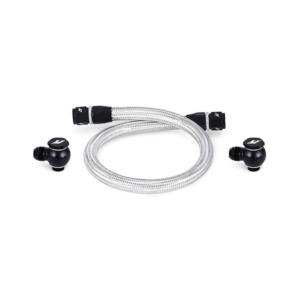 The Mazda RX8 has a high-winding rotary engine capable of easy reaching 9,000RPMs on a daily basis. With those revs comes very high oil temperatures. Most RX8 models with manual transmissions were outfitted with dual oil coolers from the factory to keep the rotary engine's oil at a safe temperature during high speed driving and track situations. Unfortunately, over time, the stock rubber oil lines and steel fittings can severely corrode and degrade over time. The most frequent line to corrode is located on the left hand side of the car near the front suspension assembly. The design of the vehicle and location of the line are apt to collect dirt and road salt from winter. With the Mishimoto replacement oil line, not only is this problematic line replaced, it's replaced with a full braided stainless steel oil line and aluminum M18 -- 10AN banjo fittings that will not corrode or break down over time. The oil line fits onto the vehicle with no additional modification, and does not require any cutting to your vehicle or permanent removal of parts. Keep you RX8 protected and running smooth! As with all our products, this kit includes the Mishimoto Lifetime Warranty.