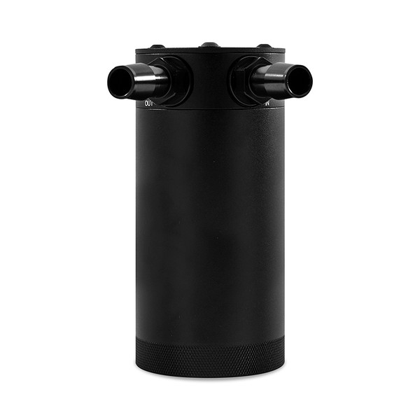 With years of oil catch can research and development, Mishimoto has created the most effective oil catch can on the market. The patent pending Mishimoto XL Baffled Oil Catch Can was designed to separate oil particles from the PCV/CCV air that would normally have just been routed back to your intake. The internal air diverter increases air turbulence and ensures all the oil sinks to the bottom of the can, leaving nothing but clean air to pass through the 50-micron bronze filter to the intake. An internal baffle keeps the collected oil from splashing around under race conditions. This oil catch can features two ports, one inlet and one outlet, for easy installation on CCV and PCV systems.The Mishimoto XL Baffled Oil Catch Can features a 7.5 fluid ounce capacity for heavy blow-by collection or extending the servicing interval on any vehicle. The 100-percent billet, 6061 aluminum can features M16 x 1.5 threads at the inlet, outlet, and drain area and includes two black anodized, CNC-machined aluminum fittings to make installation effortless. Our catch can is also sealed with Viton™ O-Rings to ensure all captured blow-by stays inside of the can. For maximum fitment options, the top mounting setup allows the can to be mounted from multiple angles. To make maintenance easy, the drain plug can be removed to allow for a return to the oil pan. The can is also 100-percent washable, unlike many other cans that require you to replace your filtration system.Our catch cans are different from most air-oil-separator (AOS) systems on a few levels. First, our catch cans are not heated. This means that all of the blow-by is able to condense in the can, including low-octane oil vapors and contaminated fuel vapors. Most AOS systems also drain the blow-by back into the oil pan, while our catch cans trap the blow-by and keep it out of the engine permanently. If you’ve seen what we’ve seen in the bottom of our catch cans, you won’t want that draining back into your oil either.