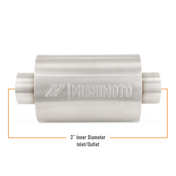 How much you enjoy driving your car or truck is directly proportional to how good it sounds. No matter how much powerit makes or how well the chassis is sorted, a well-designed exhaust can mean the difference between an exciting drive anda dull commute. At Mishimoto, we offer a variety of components to make your exhaust suit your vehicle and your taste,from pipes to V-bands and now resonators and mufflers.----Our universal stainless-steel resonators are designed to bringyour exhaust to life while cutting out drone and rasp. The perforated, fiberglass-packed, straight-through core suppressesunwanted noise while letting your engine growl and breathe freely. The brushed stainless-steel body and precision TIGwelds add a sleek look to your exhaust and withstand even the harshest environments. Our resonators are available with2.5-inch or 3-inch inner-diameter inlets and outlets to easily slip onto existing piping, making them easy to install. Like allMishimoto exhaust parts, these resonators are backed by our Mishimoto Lifetime Warranty to ensure your car or trucksounds its best for a lifetime to come.