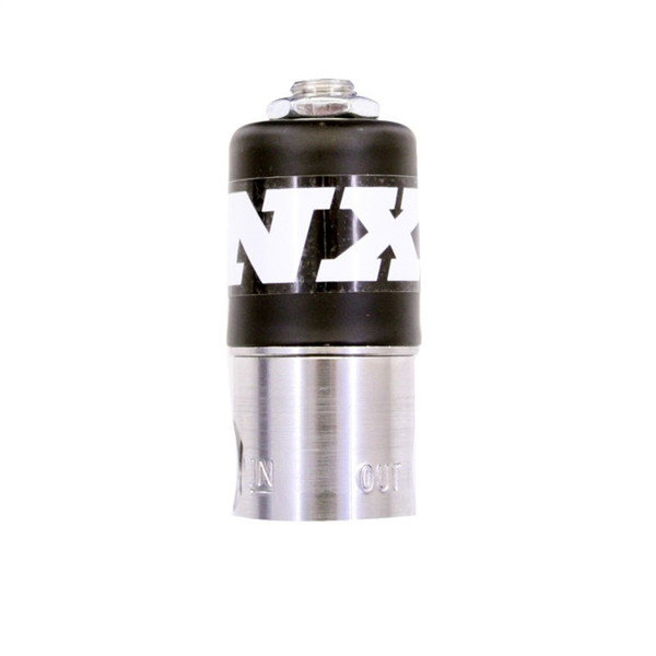 NX Lightning solenoids feature a raised inlet and bottom exit which eliminate up to three 90 degree turns and one expansion area in the body of the solenoid. The result is more horsepower! Lightning solenoids are CNC machined from lightweight billet aluminum and topped with true carbon fiber cans for the ultimate in weight savings and beauty. Lightning series nitrous solenoids feature a bypass port which allows you to connect a purge valve directly to the body of the nitrous solenoid or a small bypass/return line to your fuel tank. This feature eliminates lean spikes caused by air trapped between the fuel pressure regulator and the fuel solenoid. Nitrous Express only uses the highest quality, made in the USA solenoid components.