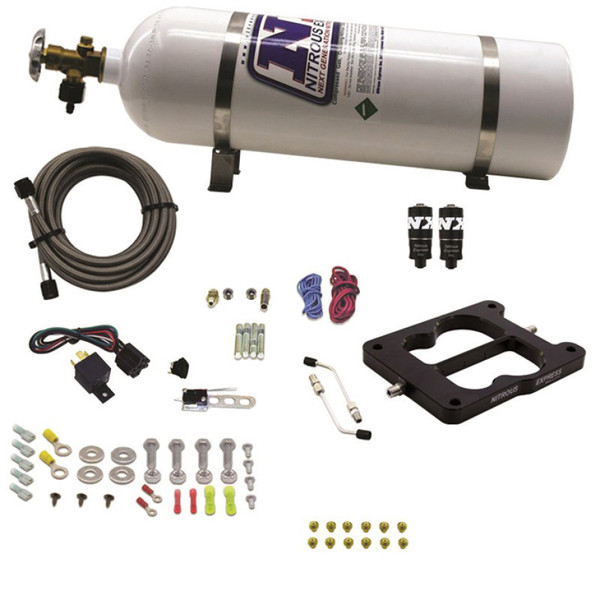 For the enthusiast who wants to use nitrous yet does not want to spend a lot of money, the ?Hitman? is the way to go. Equipped with the latest Lightning 45 bottle valve, stainless bottle brackets and the adjustability of three horsepower settings: 100-150-200. The Phase 3 series nitrous plates are the ?Next Generation? in nitrous performance and reliability. This new innovation in plates provides superior distribution and outstanding atomization. With no spray bars to sag, split, block airflow, or damage this is truly the ?Next Generation? in plate technology. The ?Hitman? is the perfect, low cost, introductory system for the nitrous novice.