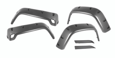 This six piece factory-style replacement fender flare kit from Omix is constructed of virtually indestructible, hard-wearing, UV treated thermoplastic to provide years of service. Each replacement flare is designed to fit into your factory mounting holes (if factory hardware is rusted, some hole modification may be needed).This replacement flare kit fits 97-06 Wrangler TJ and 04-06 Wrangler Unlimited LJ models and includes 4 OE style flares, 2 flare extensions and all the necessary mounting hardware.