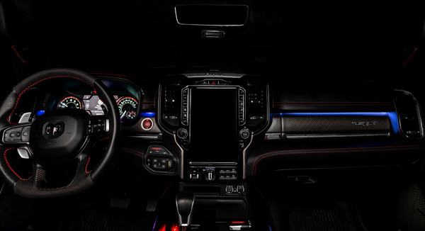 Unimpressed with the dim white light in the dash of your new RAM truck or looking for an easy way to add unique style to the vehicle's interior? With the new ORACLE Lighting Interior Ambient Lighting ColorSHIFT(tm) RGB Kit for the 5th Gen RAM, you can turn the stock dash light into a vivid color accent! This kit is the perfect way to accent your interior cleanly and seamlessly. With an easy-to-use smartphone app, control your new RAM RGB dash lights to be any color imaginable for a style that's all your own. Our RAM ambient lighting dash kit uses ColorSHIFT(tm) RGB circuit boards that replace the existing circuit boards in the dash. Easily connect to our included RGB Bluetooth controller via plug-and-play connections. Connect the controller to the cigarette lighter adapter in the dash using the included connectors, and you can control the lights using the free app on your smartphone. Using the app, you have full control of the hundreds of colors, patterns, and brightness levels. Our cutting-edge RGB interior ambient lighting kit for 5th Gen RAMs is a great way to personalize your ride with show-stopping looks and industry-leading performance. Stand out with new, modern LED styling with ORACLE Lighting!