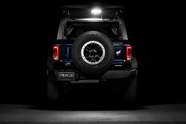 Tired of dim cargo lighting? The Ford Bronco is a great vehicle, but one area for improvement is the factory LED interior lighting in the cargo area. The existing lighting doesn't provide enough usable illumination for the rear cargo area. The Bronco is made for adventuring, but this lack of lighting makes accessing cargo at night difficult while on the trail, camping, or tailgating. ORACLE Lighting has developed an integrated cargo light module to easily add a bright LED light to the rear hatch cargo space and the area around the vehicle! This Ford Bronco cargo light uses the vehicle's existing 12V power source and simply replaces the factory wiper motor cover. Install is simple: just swap in the new cover using the included parts and plug the adapter into your rear accessory socket. The lights can easily be turned on and off with the flush switch located on the panel. Experience superior illumination with ORACLE Lighting's Bronco cargo light module!