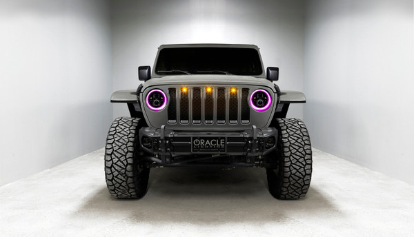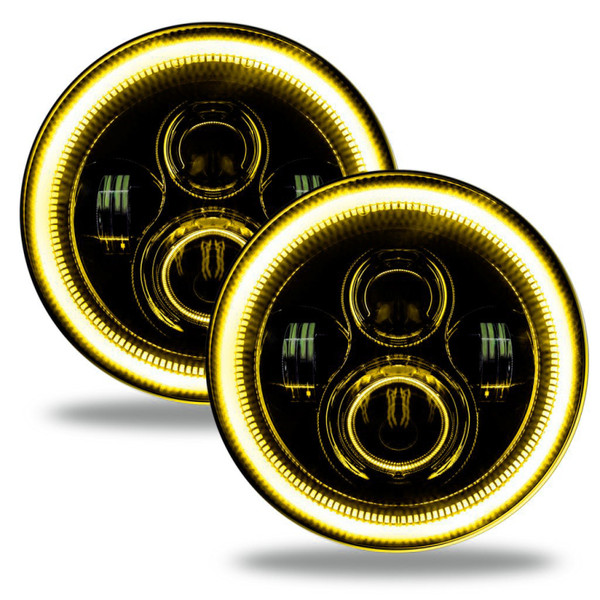 The Ultimate LED replacement headlight option for any vehicle with 7" Sealed Beam lamps. The rugged design is perfect for your Jeep Wrangler, Off-Road Vehicle, Buggies, or Classic Car/ Truck. Installation is very easy with the included H4 and H13 Plug and Play connectors. Each set comes in full color retail-ready packaging and a 2-Year free Replacement Warranty. The new ORACLE Lighting Dynamic ColorSHIFT(tm) Halos feature individually addressable LEDs which pack a ton of unique features.. The Dynamic features allow the user to run multiple moving color patterns through the LEDs, creating a vivid eye-catching lighting effect. App Control: Through the App you can easily make standard white colors as well as any static colors using the LED color wheel. What makes these DYNAMIC halos more unique is that you can also display a variety of moving patterns within the app. With over 200 different patterns there is something to fit every color scheme you can imagine!