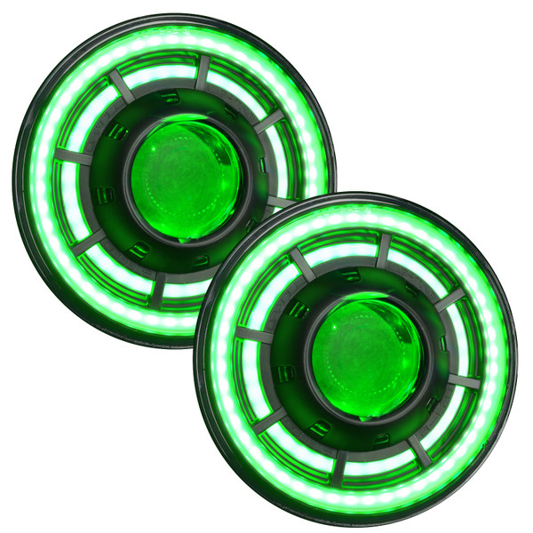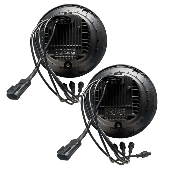 Introducing the all-new Oculus(tm) Bi-LED Headlamp system by ORACLE Lighting. Now available in a ColorSHIFT(tm) RGB+W Color-Changing version! Featuring advanced LED projection with 4,800 Lumens of high-quality illumination for enhanced driver visibility in all weather conditions. The LED light source has lower power demands compared to the factory lamps while providing more light output. ColorSHIFT(tm) Oculus(tm) Headlights feature 3-Tiered RGB features in the lamps: Outer Halo Ring (RGB+W) Inner Halo Ring (RGB) Projector Demon Eye (RGB) Each LED feature has a separate cable output and can be connected together so all 3 create the same color or set up as 3 separate Channels or zones depending on the user preference and the ColorSHIFT(tm) controller selected. Check out our Y-Splitter Adapters for the easiest control using our BC1 ColorSHIFT(tm) Controller Please note that these features are intended for off-road show use only and are not compliant for street use. The Pure-White DRL has its own wiring harness (same as the original Oculus) that connects to the fuse box with an add-a-circuit for easy and safe integration. The DRL will come on when the engine is running or can be connected to a switch (including the factory Aux switches) for additional user control.