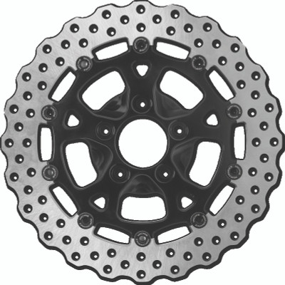 Performance Machine Speedstar Race Weight Full-Floating Brake Rotors are CNC precision machined to ensure a flat and parallel surface. Hardening the 420 stainless steel outer band to meet RC36 specifications, coupled with a full-floating design yields a rotor with a higher resistance to deformation. The wave cut braking surface is drilled in a sweep pattern for optimal heat dissipation with a reduction in weight. The inner carrier utilizes the increased strength of 7075-T6 aluminum for a lighter weight design while improving braking performance. The laser engraved PM logo on the floating elements will let everyone know you are serious about performance. Designed for use with most OEM and aftermarket wheels and calipers.