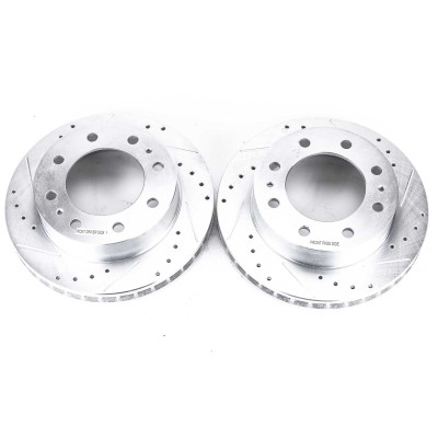Power Stop drilled and slotted rotors provide a bolt-on upgrade for improved brake cooling and performance. Precision cross-drilled for maximum cooling and maximum performance during extreme conditions; rounded slots sweep away gasses, dust, and moisture to keep a clean friction contact patch on the rotor surface. Silver zinc dichromate plating resists rust and corrosion. With a direct OE fit, there are no special modifications needed.
