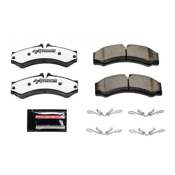 The Power Stop Z36 Truck & Tow ceramic brake pads are designed as an upgrade over stock brakes to reduce brake dust & eliminate noise for those that tow and haul, as well as the off-road enthusiast. These brake pads are made with a low-dust ceramic formula, infused with carbon-fiber to strengthen the compound and provide severe-duty stopping power for trucks and SUVs. Premium hardware along with ceramic brake lubricant is included with the Z36 brake pads making it easier to complete your brake job. Use Z36 Truck & Tow brake pads to give your truck or SUV the severe-duty stopping power it deserves.