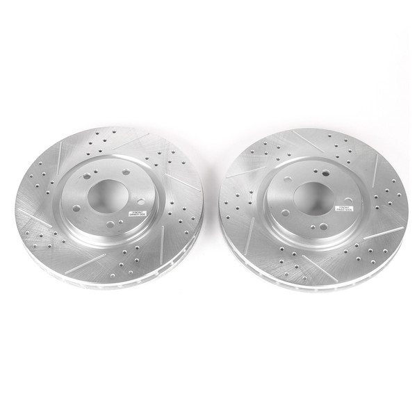 Power Stop drilled and slotted rotors provide a bolt-on upgrade for improved brake cooling and performance. Precision cross-drilled for maximum cooling and maximum performance during extreme conditions; rounded slots sweep away gasses, dust, and moisture to keep a clean friction contact patch on the rotor surface. Silver zinc dichromate plating resists rust and corrosion. With a direct OE fit, there are no special modifications needed.