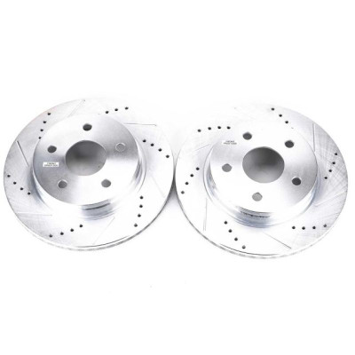 Power Stop drilled and slotted rotors provide a bolt-on upgrade for improved brake cooling and performance. Precision cross-drilled for maximum cooling and maximum performance during extreme conditions; rounded slots sweep away gasses, dust, and moisture to keep a clean friction contact patch on the rotor surface. Silver zinc dichromate plating resists rust and corrosion. With a direct OE fit, there are no special modifications needed.