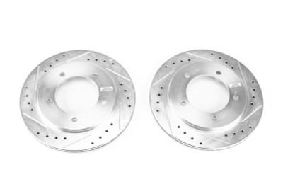 Power Stop drilled and slotted rotors provide a bolt-on upgrade for improved brake cooling and performance. Precision cross-drilled for maximum cooling and maximum performance during extreme conditions; rounded slots sweep away gasses, dust, and moisture to keep a clean friction contact patch on the rotor surface. Silver zinc dichromate plating resists rust and corrosion. With a direct OE fit, there are no special modifications needed.