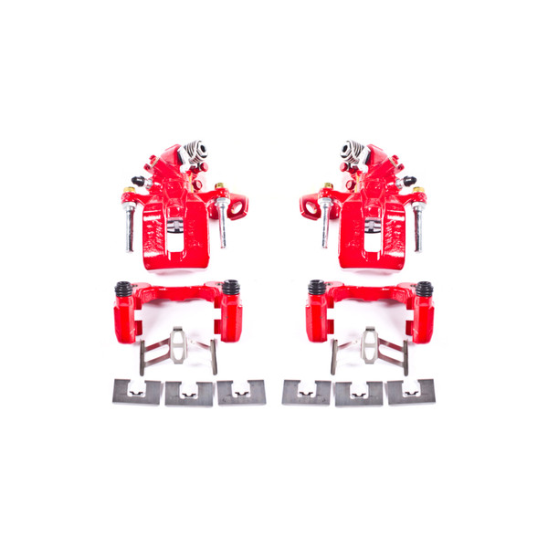 PowerStop Brake Calipers are made specifically with the enthusiast in mind. These calipers bolt directly in place of the stock calipers, and they look and perform great behind stock or custom wheels. PowerStop calipers and the brackets are remanufactured in our Chicago, IL facility and treated with a electrostatic high-temperature red powder-coating. The easy to clean powder coating helps to resist rust and corrosion thus extending the life of your calipers. PowerStop calipers are 100% pressure tested to verify piston operation and prevent any possible leaks from occurring. This ensures that every caliper is inspected for quality and safety. PowerStop caliper pairs are expertly assembled using new seals, caliper guide pins, dust boots, bleeder screws, stainless steel brake pad abutment clips and mounting brackets. Our manual parking brake calipers are provided as a complete assembly to include all adjusting hardware, actuating levers, return springs, clips and bolts. High temperature EPDM rubber dust boots and premium silicone lubricant is used for a smoother operation and an extended life in extreme conditions. The color is a nice touch that really stands out behind your wheels!