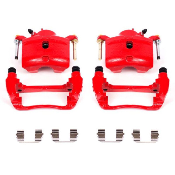PowerStop Brake Calipers are made specifically with the enthusiast in mind. These calipers bolt directly in place of the stock calipers, and they look and perform great behind stock or custom wheels. PowerStop calipers and the brackets are remanufactured in our Chicago, IL facility and treated with a electrostatic high-temperature red powder-coating. The easy to clean powder coating helps to resist rust and corrosion thus extending the life of your calipers. PowerStop calipers are 100% pressure tested to verify piston operation and prevent any possible leaks from occurring. This ensures that every caliper is inspected for quality and safety. PowerStop caliper pairs are expertly assembled using new seals, caliper guide pins, dust boots, bleeder screws, stainless steel brake pad abutment clips and mounting brackets. High temperature EPDM rubber dust boots and premium silicone lubricant is used for a smoother operation and an extended life in extreme conditions. The color is a nice touch that really stands out behind your wheels!