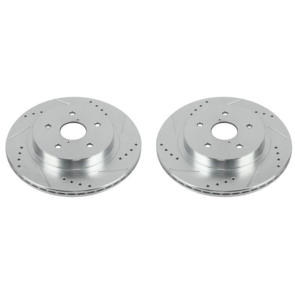 Power Stop drilled and slotted rotors provide a bolt-on upgrade for improved brake cooling and performance. Precision cross-drilled for maximum cooling and maximum performance during extreme conditions; rounded slots sweep away gasses, dust, and moisture to keep a clean friction contact patch on the rotor surface. Silver zinc dichromate plating resists rust and corrosion. With a direct OE fit, there are no special modifications needed.