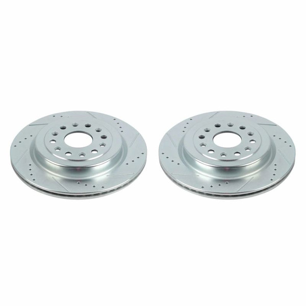 Power Stop drilled and slotted rotors provide a bolt-on upgrade for improved brake cooling and performance. Precision cross-drilled for maximum cooling and maximum performance during extreme conditions; rounded slots sweep away gasses, dust, and moisture to keep a clean friction contact patch on the rotor surface. Silver zinc dichromate plating resists rust and corrosion. With a direct OE fit, there are no special modifications needed.