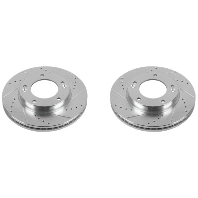 Power Stop drilled and slotted rotors provide a bolt-on upgrade for improved brake cooling and performance. Precision cross-drilled for maximum cooling and maximum performance during extreme conditions; rounded slots sweep away gasses, dust, and moisture to keep a clean friction contact patch on the rotor surface. Silver zinc dichromate plating resists rust and corrosion. With a direct OE fit, there are no special modifications needed.