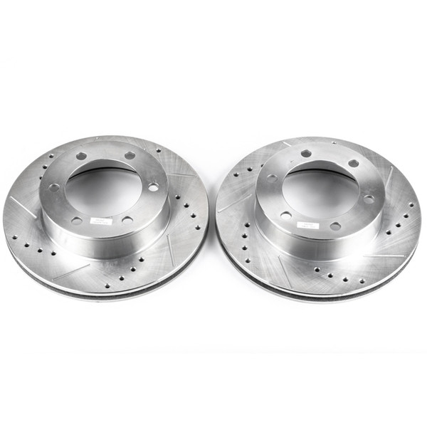 Power Stop drilled and slotted rotors provide a bolt-on upgrade for improved brake cooling and performance. Precision cross-drilled for maximum cooling and maximum performance during extreme conditions; rounded slots sweep away gasses, dust, and moisture to keep a clean friction contact patch on the rotor surface. Silver zinc dichromate plating resists rust and corrosion. With a direct OE fit, there are no special modifications needed.