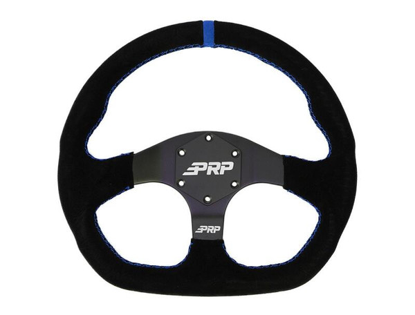 PRP's Comp-R Steering Wheels are Built for Off-Road. These D-Shaped (or Flat Bottom) Steering Wheels are great for UTV's and other vehicles that don't have a lot of space between the wheel and your legs. Each is made with high quality suede that is durable, moisture resistant, and wont rub off on your hands. The wheel has a thick hand grip that makes it easy control while steering though corners or bouncing around in the rocks. Constructed from high strength aluminum, with a matte black finish for extra durability... and to make it look cool. The steering wheel has 6 point bolt pattern, specifically chosen because it fits the majority of aftermarket quick releases and hubs. Available in three different colors. Features: Made from high strength aluminum with a matte black finish. 6 Point Bolt Pattern - Most common in off-road industry quick release adapters. Durable and moisture resistant High-Quality Suede that won't rub off on your hands. Measurements: Diameter – 13 inches Weight – 2 lbs Dish depth – 1½ inches Bolt Pattern Measurement - 2.75"