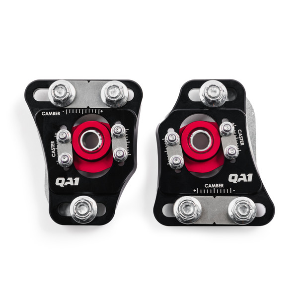 Product Overview All new aluminum caster camber plates are a game-changer for your Mustang’s suspension system. Not only are they significantly lighter than their steel counterparts, their highly durable anodized finish resists corrosion. To add to that, they offer precision adjustment which allows for even sharper tuning of your suspension geometry and tire wear patterns. And you can't ignore the sleek and modern appearance they bring to your ride while reducing road noise and making for a smoother and more comfortable ride. Lightweight and Great Looks QA1 lightweight aluminum caster camber plates offer the perfect combination of performance and style, making them a must-have upgrade for any mustang owner.Laser Engraved Alignment Marks QA1 caster camber plates are laser-etched with alignment references, making it much easier to dial in your suspension. Easy, Bolt-In InstallationOur commitment to thoughtful product design is evident in every fully bolt-in kit we produce, to deliver the highest level of performance, while ensuring trouble-free compatibility.Made in the USAQA1 caster camber plates are proudly made in Lakeville, Minnesota. Fitment NotesFor use with QA1 Proma Star Struts only