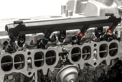 A bolt-in fuel rail for the non-turbo Toyota 2JZ-GE engines. CNC machined aluminum with four -8AN ORB ports. E85 compatible. See www.radiumauto.com for more details.