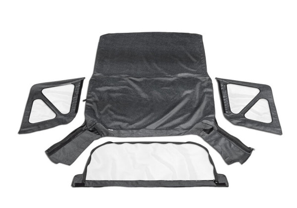 Replace your aging, worn out factory soft-top and gain some additional storage space inside the driving compartment. All the features of the original factory top with exclusive Rampage additions which includes two zippered storage pockets. Produced in original factory specifications and colors. The Rampage replacement top easily installs over factory framework, attaches to factory mounting points and Original Equipment belt rail attachment System. Fits all factory applications. Original soft top harware is required for installation. Available in tinted or clear windows.