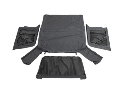 The TJ Complete Soft Top includes factory-grade fabric top, full frame, hardware, bows, soft top storage bag, tailgate tonneau and soft upper doors. It comes with easy to follow instructions and is...