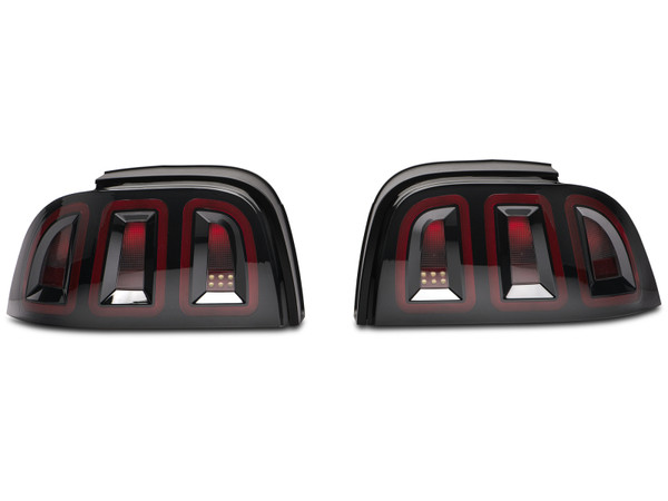 Bring your 1996-1998 Mustang into the 21st Century with a set of Raxiom Icon Tail Lights. These Raxiom Tail Lights will add the bold iconic styling of the fifth generation Mustang to your very own ride. Featuring built-in modern LED technology that is used for both the reverse and running light rings, these Raxiom Icon Tail Lights will dramatically transform the appearance of your SN95 Mustang. Raxiom Icon LED Tail Lights are manufactured using state of the art LED electronic components with a simple plug-in connector that easily inserts into the stock wiring (or Raxiom sequential) tail light harness for a simple straight forward installation. The high intensity LED running light rings of these Raxion Icon Tail Lights not only look great, but they also improve your driving safety as they are much brighter than the standard factory incandescent bulbs making sure you are clearly seen at night. These Raxiom Icon LED Tail Lights are designed to work with your existing Raxiom Sequential Tail Light Harness to give your SN95 Pony the high tech styling of the late model Mustangs. If you would like a slower speed for the sequence of your tail lights to get that modern muscle car styling, combine this sequential tail light kit with the Raxiom Turn Signal Flasher V1 (For Incandescent Bulbs) or Raxiom Turn Signal Flasher V2 (For LED Bulbs). Raxiom Icon LED Tail Lights not only improve the appearance of your Mustang, but they also meet or exceed the strict guidelines set forth by the U.S. Department of transportation (DOT) making them DOT compliant under compliance# QR1300191. These Raxiom Tail Lights can be used on 1994-1995 Mustangs when installed with a tail light wiring harness from any 1996-1998 Mustang. Bulbs are not included. These tail lights reuse the stock bulbs or you can upgrade to Raxiom LED Tail Light Bulbs. Raxiom LED Tail Light Bulbs will require the use of a Raxiom Modified Turn Signal Flasher for proper operation.