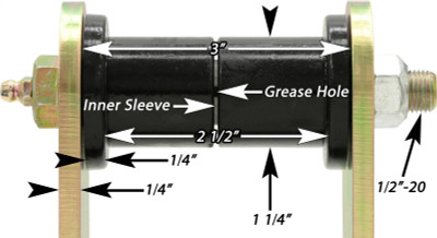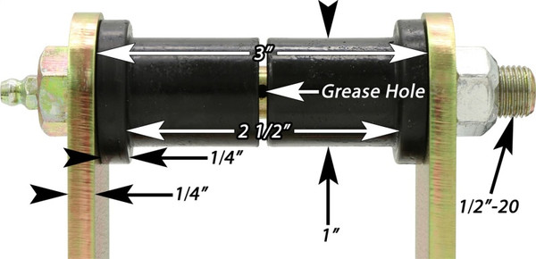RockJocks greasable rear shackles for 1976-1986 Jeep CJ vehicles directly replace the stock shackles with our new, heavy duty units. Our shackles feature laser cut, 1/4 in. thick steel side plates, Energy Suspension fluted urethane bushings, grade 8 greasable bolts that feature zerk fittings on their heads for greasing of the bushings, and center bolt-in sleeves for added rigidity. Shackles are 4 1/4 in. tall from bolt center to bolt center (which is approximately 3/4 in. taller than stock). Finished in corrosion proof gold zinc plating and sold in pairs.