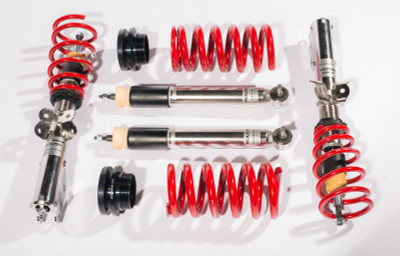 Dramatically improve your Mustang's handling and appearance with ROUSH Coilovers. Our Single Adjustable Suspension Kit combines a set of performance struts and shocks, tuned for a perfect balance of control and comfort, with height adjustable performance springs. This kit will lower your Mustang 1.5 inches in the front and 1.0 in the rear with plenty of room for additional adjustment. Easily tailor the stance of your ride, or adjust corner weights for optimum balance. Rated for over 1.0g lateral acceleration, this kit is perfect for track days, autocross or a spirited drive down your favorite back road. ROUSH Suspension Kits are engineered and tested to achieve proper balance with whole vehicle as an integrated system and will take your Mustang to the next level.