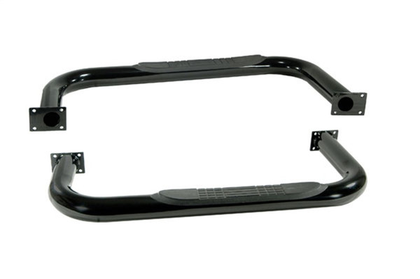 Complete the look with a set of Rugged Ridge tough duty side steps. Each side step is designed to be mounted to the frame of your Jeep creating a no-bounce secure fit. Each side step has a durable no-slip step pad that is specially mounted to the tube with rust-proof fasteners for long life and durability. Side steps carry a 300lb max weight limit.