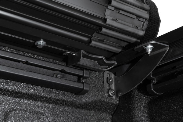 Rugged Ridge's Armis Hard Rolling Bed Cover offers superior protection and greater versatility for today's Jeep Gladiator models. The cover is crafted from heavy-duty black aluminum slats that are lightweight yet super-strong. Each slat is then pressure -bonded to the sleek, matte black exterior woven fabric, delivering a sleek appearance and outstanding durability. When closed, the Armis Hard Rolling Bed Cover has a low, flush-mount profile that looks as beautiful as it works, rolling up to the cab smoothly and easily. When opened, the cover allows great driver visibility out the back glass by staying low to the bed rails. Convenient rear latches allow the cover to be opened easily from either side of the bed while the Quick Release System lets you remove and re-install the cover in just minutes for full bed access. Works with OR without the Trail Rail Management System. Best of all, it's backed by our Limited 5-Year Warranty.