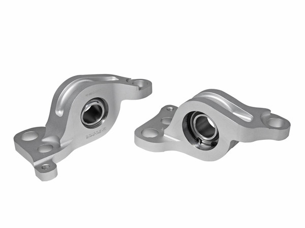 Skunk2 Racing is proud to announce the release of its Spherical Bearing Compliance Bracket for the front lower control arms on the '92-'95 Civic and '94-'01 Integra. Skunk2 Racing's Billet Compliance Bracket w/ Spherical Bearings are direct replacements for your soft and worn OEM units that compromise geometry for comfort. Our Billet Brackets and Spherical Bearings eliminate deflection and increases the lower control arms freedom of motion on multiple axes simultaneously. Spherical Bearing Billet Compliance Brackets offer the hardcore racer and discerning enthusiast, the very best of the best. Accurate suspension geometry is maintained under the most aggressive driving conditions using high load steel spherical bearings that are retained in the billet housing with removable Spirolox, giving you the ability to service or replace when needed. Skunk2 Racing Billet Compliance Brackets w/ Spherical Bearings are recommended for no-nonsense track cars or extreme performance streetcars. For maximum suspension performance, Skunk2 Billet Compliance Brackets w/ Spherical Bearings are best complemented with Skunk2 Spherical Bearing Front Lower Control Arms, Pro Series Camber Kits, Coilovers, and Strut Tower Bars. False