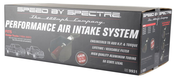 Spectre air intake systems are designed to get more horsepower and torque from your vehicle while working to protect your engine from harmful debris. This air intake system comes with a washable, reusable low restriction Spectre filter, polished aluminum intake tubing and a black powder coated heat shield to help prevent heated engine air from entering the intake inlet. Included are the plenum, hose clamps, couplers, vibration mounts and all necessary hardware for an OE fit and finish. The Spectre Air Intake tube has provisions to mount the breather tube (included).