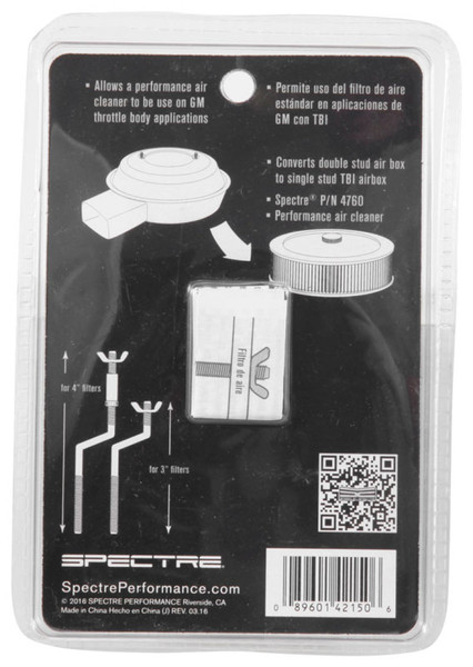 Spectre Plenum 4in. OD x 9in. (Air Cleaner to Stud Inlet) - Single - 9849