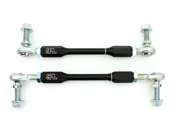 SPL Parts PRO Front Endlinks (FE) for the FRS/BRZ/08+WRX feature massive 2-piece Teflon lined FK 1/2" bearings to provide the highest load capacity for use with stiffer aftermarket sway bars. Custom heat treated Chromoly High Misalignment Studs connect to the sway bar and strut and offer extreme articulation capability (65deg) to prevent the endlink from binding when used with different adjustment holes on aftermarket sway bars. This version is recommended when using OEM Front Lower Control Arms and OEM front struts. Some aftermarket coilovers