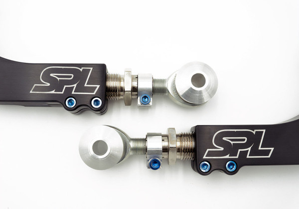 S550 Mustang Rear Upper Arms (RUA) were carefully designed to provide strength, clearance to axle and frame, while allowing for huge range of adjustment. The rear upper arm eliminates the need to adjust from the far inboard side of the arm, which is incredibly hard to reach, and moves all adjustment to the knuckle side, easing alignments. The inner bolt is locked out to a single position, so all adjustments will be done using our double adjustment mechanism, making fine-tuning the rear camber far easier. The assembly uses a 6061-T6 Billet Aluminum body, hardened SPL Double Adjuster specifically designed for the application, as well as hardened rod ends, making this part exceptionally strong to be able to hold any and all loads that are put through it by the stickiest tires you can put on your Mustang. The arm was designed with FEA to ensure it could hold the loads, then destructively tested to confirm the FEA. All the wear components (rod ends) are easily replaceable in this assembly. SPL Parts S550 Mustang Rear Camber Arms Feature: 6061-T6 Billet Aluminum Arm Assembly Blue Anodized Titanium Socket Head Cap Screws Hardened Double Adjuster Teflon Lined Rod Ends Steel Lockout washers Grade 10.9 Hex Cap Bolts with Lock Nuts Sold as a pair. Made in the USA. Applications: 2015+ Ford S550 Mustang Instructions SPL RUA S550 Instructions