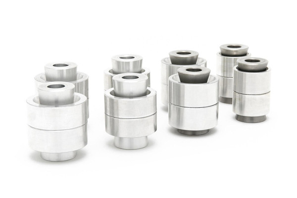 The Rear Knuckle Bushing Kit for the ND Miata provides you with a smooth articulating, deflection and compliance eliminating solution to take all of the "street-car" mushiness out of the rear of your suspension. The rear knuckle bushings in the ND Miata are rubber injected bushings with metal sleeves in them. While this does provide for a compliant ride, this is not what you desire when you are pushing the vehicle to it's limits. When pushing the car to the limit, the OEM bushings will bind and deflect causing unwanted changes to your alignment as your round corners, making it difficult to hold the car at peak grip. Replacing with a full spherical solution will eliminate all artificial spring rate and mushiness from the rear of your suspension, and allow the car you to drive the tires to their full potential grip Applications: 2016+ ND Miata