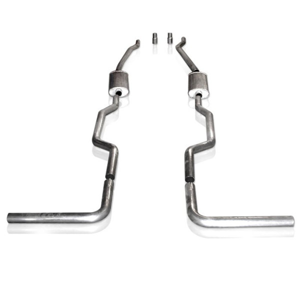 1967-87 Chevy/GMC Truck. Small Block/Big Block. CNC mandrel bent for optimal flow 304 2-1/2" stainless steel for maximum corrosion resistance. Designed to fit Stainless Works and most aftermarket headers. Dual chambered mufflers that lets the truck have an aggressive sound and great thing about this is that the tailpipes exit in stock location behind rear tires. These, kits come with a lifetime warranty and proudly made in the USA