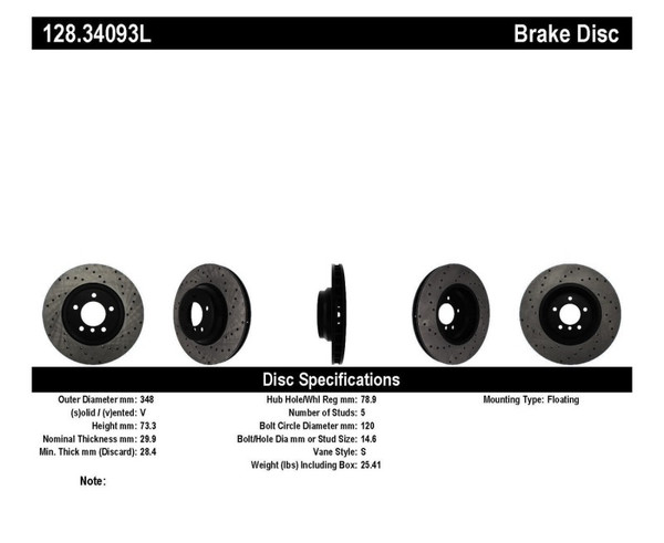 StopTech Drilled Sport Rotors are 1-piece direct replacement brake discs for factory brake systems and stock calipers that look great behind your wheels – and offer significantly improved braking performance. The unique cross-drilling aids with heat and brake dust dispersal; prevents glazing of the pads; adds bite and improves wet and dry braking performance. Built to last; the black e-coating provides protection from corrosion and the high carbon metallurgy (in most applications) offers quieter operation; better crack resistance and increased performance.